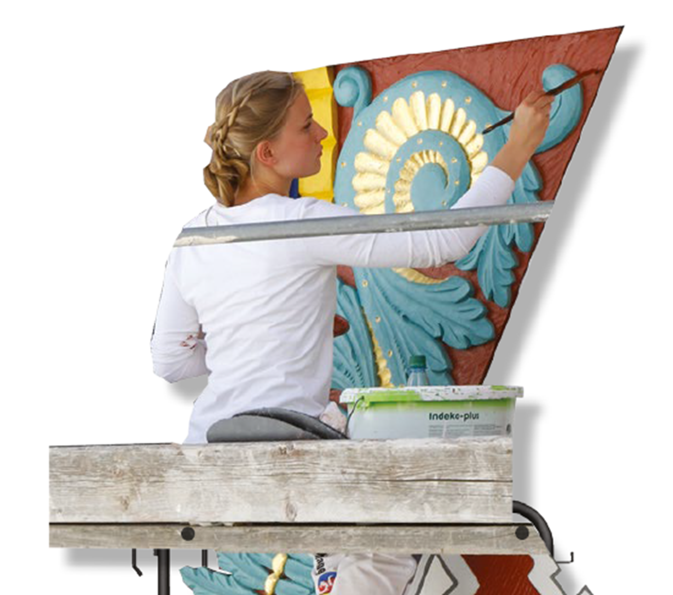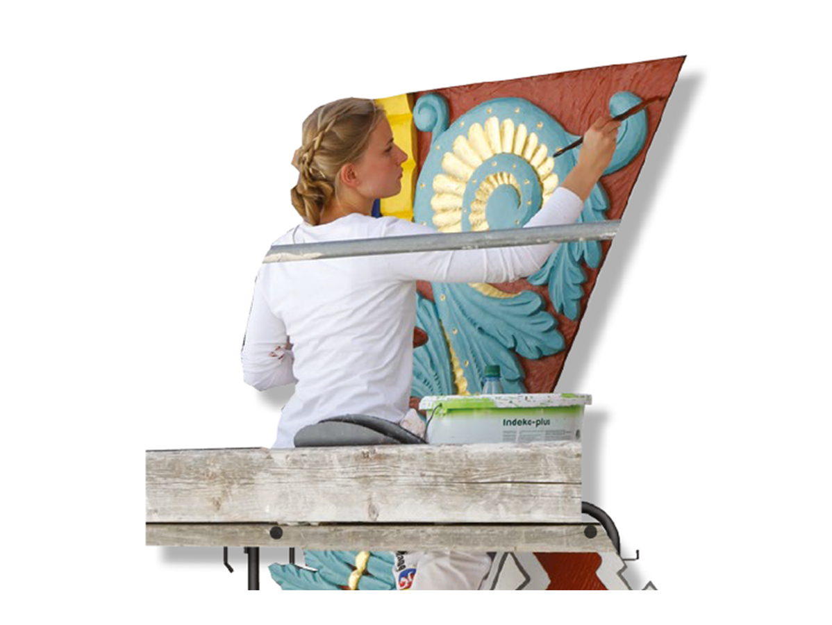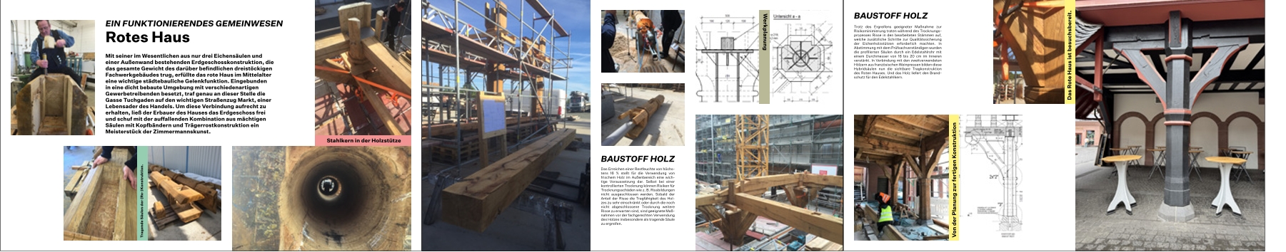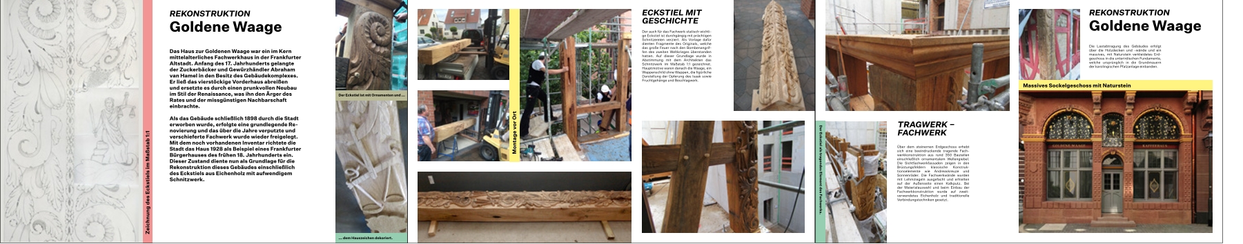 Parallel zur Bannerausstellung findet in unmittelbarere Nachbarschaft der Pergola in der Zeit zwischen April und August 2026 eine lebendige und informative Schau statt, in welcher die Handwerker und ausgewählte Bauteile aus der Neuen Altstadt die Hauptrolle spielen. Die folgenden Themen werden hier noch einmal genauer unter die Lupe genommen: